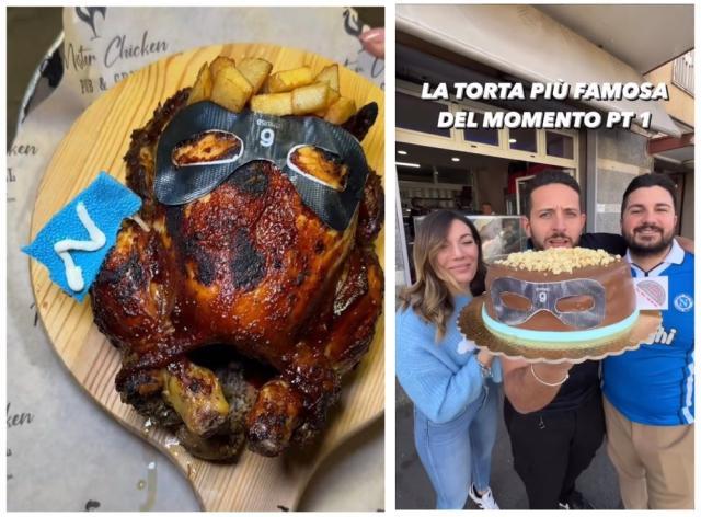 作为一座以美食文化闻名的城市,那不勒斯用各种方式在食物上体现了“奥西门元素”。他们将奥西门的面具放在各种甜品上,用蛋糕上的白巧克力、烤鸡上的炸薯条和咖啡杯里的花生碎模拟他的卷发。如果可能的话,那不勒斯人甚至愿意为月亮戴上奥西门的金发,或许这并非天方夜谭:每当天蓝军团射手在场上高高跃起,他看起来都像是要飞向太空。